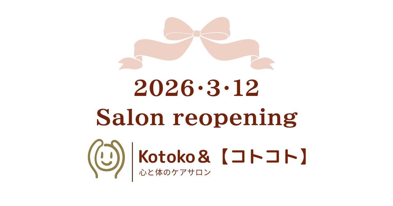今回の経験を通して、心身の痛みや揺らぎをまたひとつ深く味わい、私自身も少しだけアップデートできたように感じています。 年齢や経験を重ね、さらに深い安心感でお迎えできる準備が整いました。 新しくなったコトコを、これからもどうぞよろしくお願いいたします。 皆様にお会いできる日を、心より楽しみにお待ちしております。