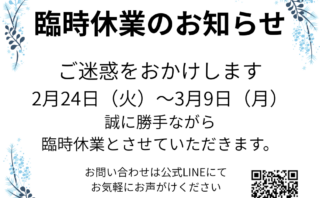 *現在駐車場のご用意がありません。駅周辺のコインパーキングをご利用くださいませ。